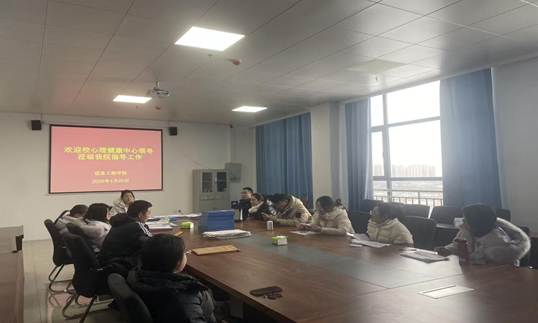 为进一步规范二级学院心理健康工作流程,夯实心理育人根基,1月20日下午2时30分,校学生处副处长牛永伟、校心理健康中心主任韩晓燕带队,携心理中心专职教师一行赴信息工程学院,专项检查八类特殊人员建档管理及心理辅导站2025年度工作开展情况。学院相关负责人及全体辅导员陪同检查并参与座谈。